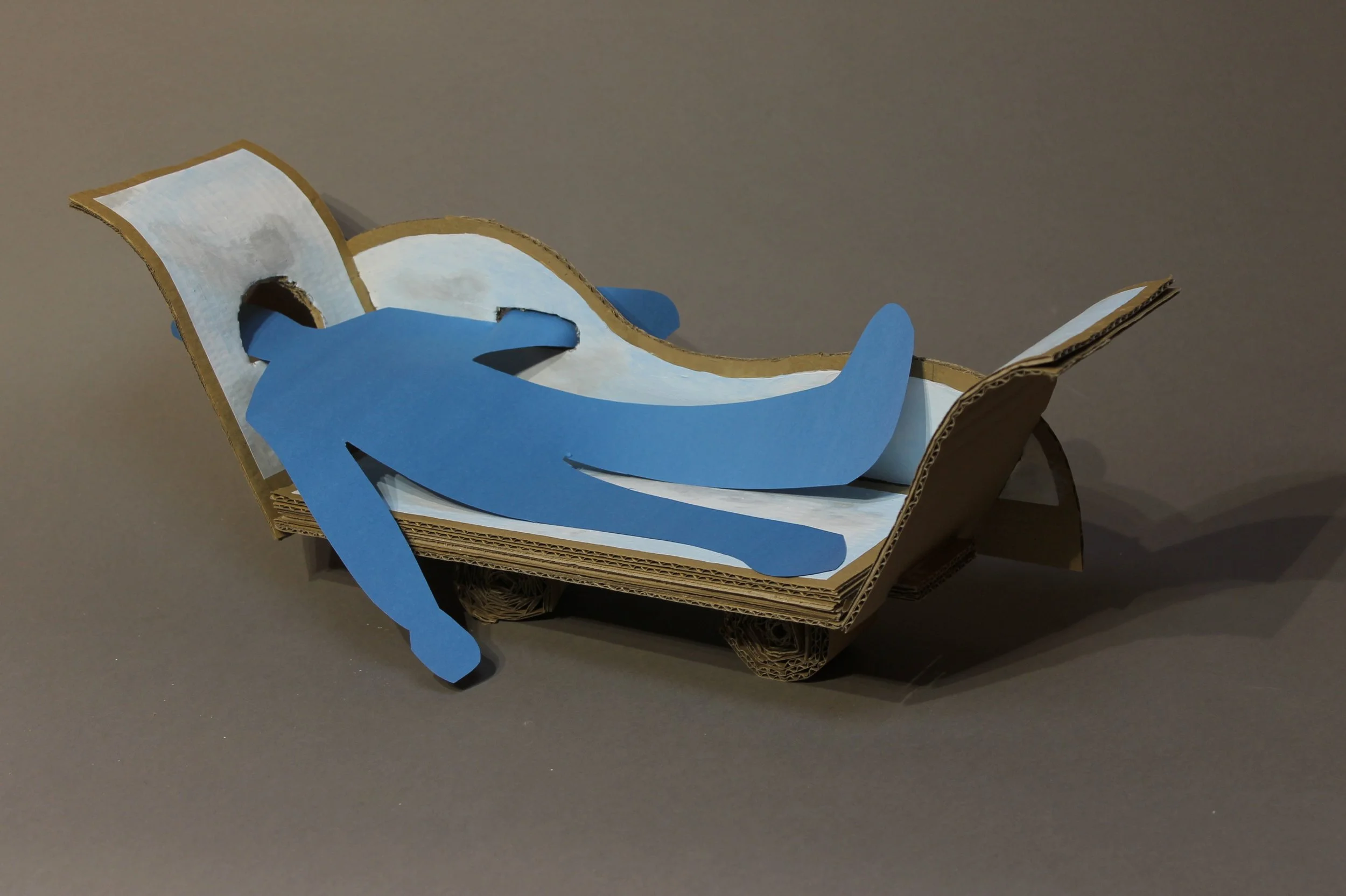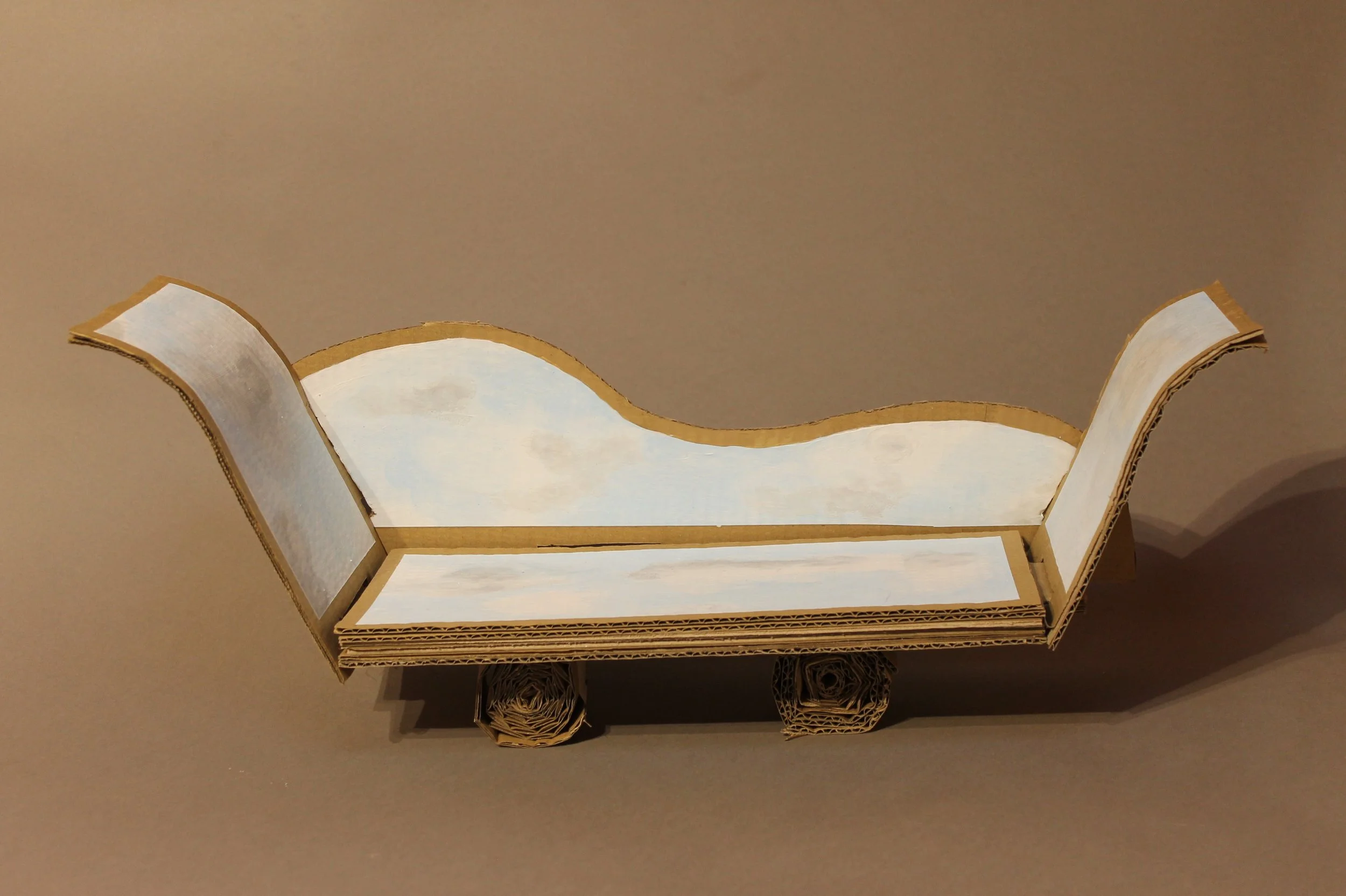 In response to the modernist styles of Ikea, the importance of cardboard during the pandemic and notions of fatigue, I would like to create opulent resting structures made from corrugated cardboard. On the card structures, Baroque style skies could be painted to imaginatively offset the onerous impact of gravity on the body of a CFS, Long Covid, or ME sufferer.