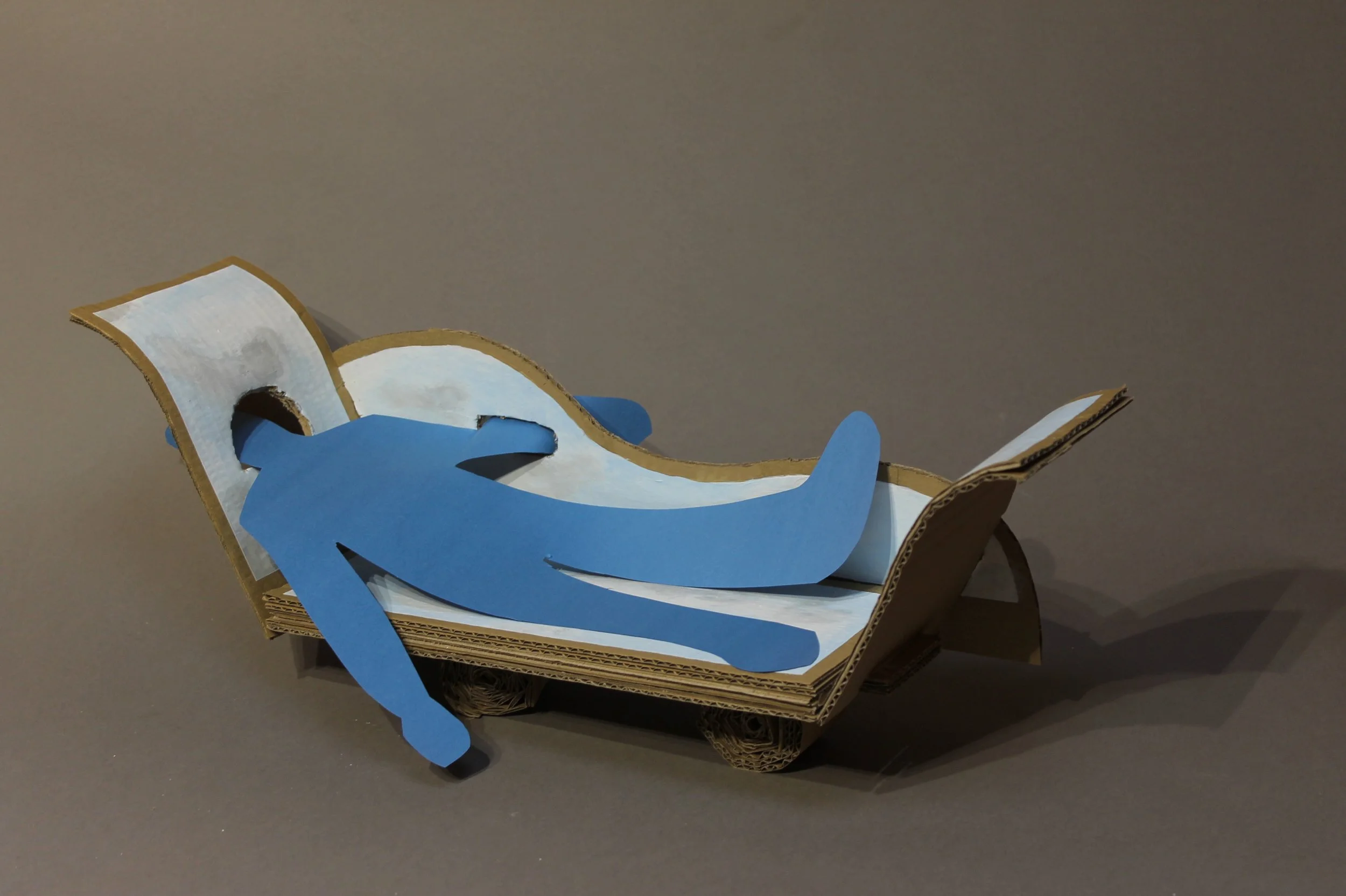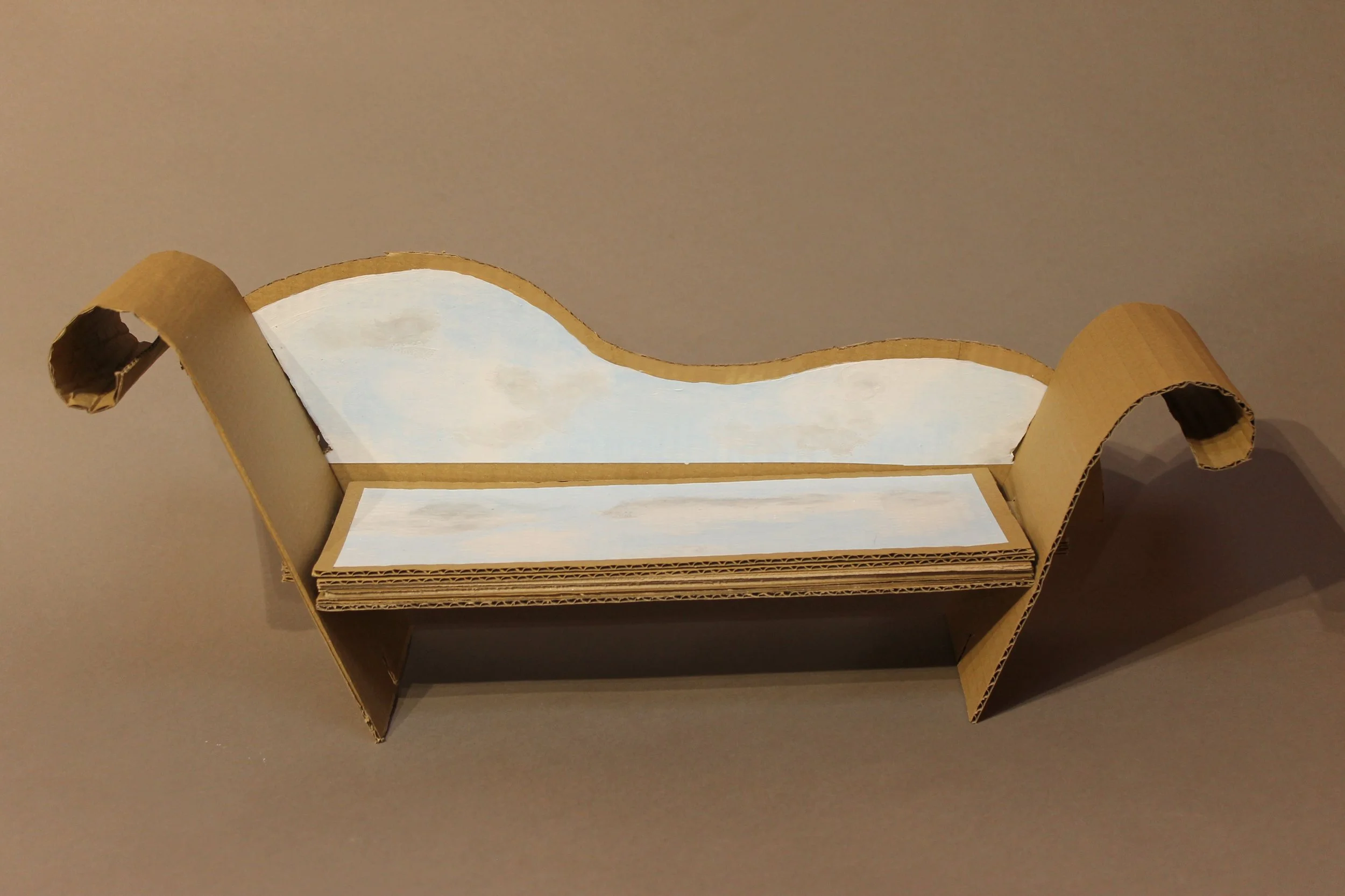 Unlike Ikea, they will ooze opulent swirls and and curls, rather than the clean economical lines of modernity. I want to twist the connotations of the phrase - fatigue - in the context of Chronic Fatigue Syndrome CFS, from which I suffer. This is because, for me, the word fatigue conjures notions of fainting ladies in corsets fragile and feminine. My ideas are influenced by Victorian paintings of Romantic iconographic imagery of women, who have experienced life threatening illnesses, and are painted convalescing on a chaise longue, framed in the beautiful draperies of their dresses - unable to move. In response, I would like to create opulent resting structures made from corrugated cardboard - a ubiquitous material used to protect online shopping which is then circuitously recycled for another journey. On the card structures, Baroque style skies could be painted to imaginatively offset the onerous impact of gravity on the body of a CFS, Long Covid, or ME sufferer.